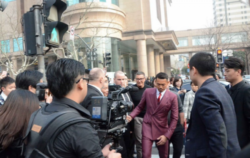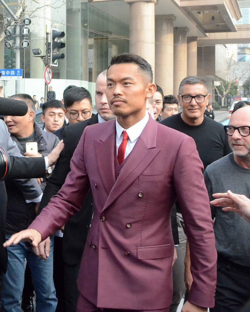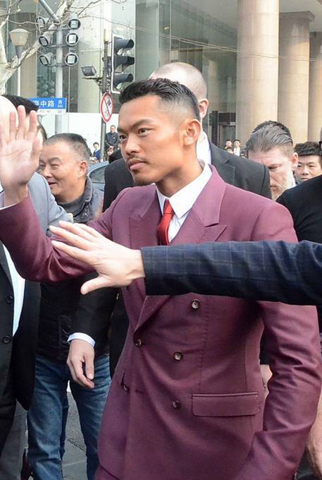林丹紫红西装现身上海街头