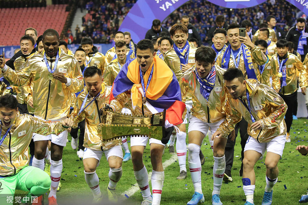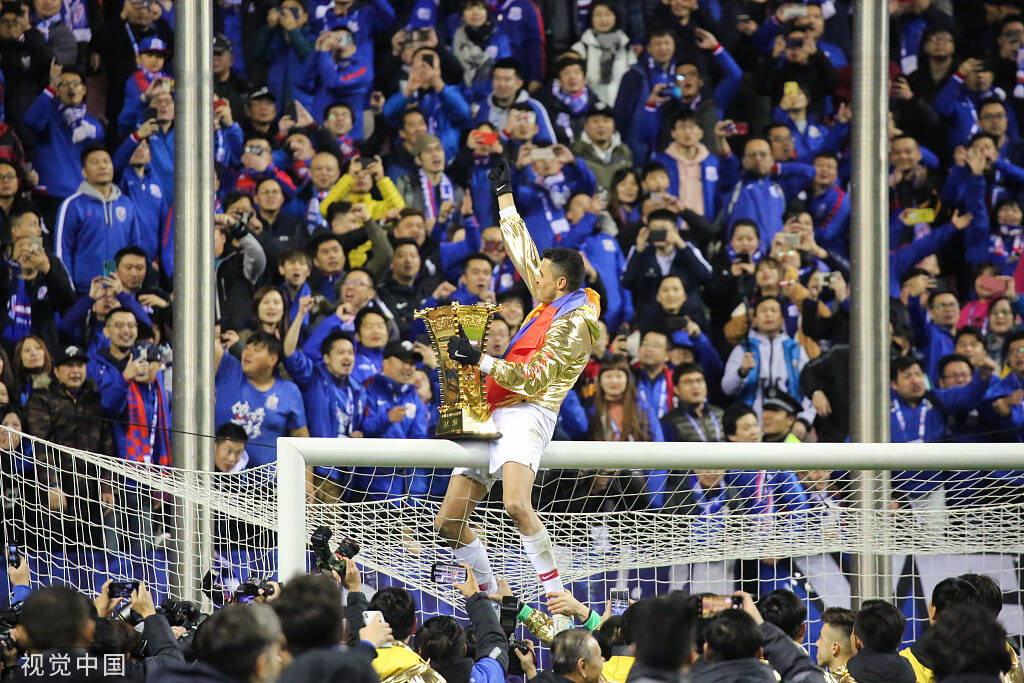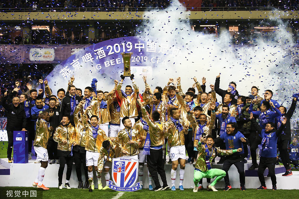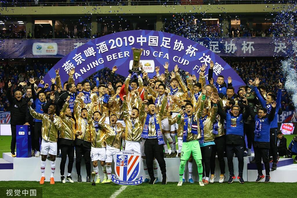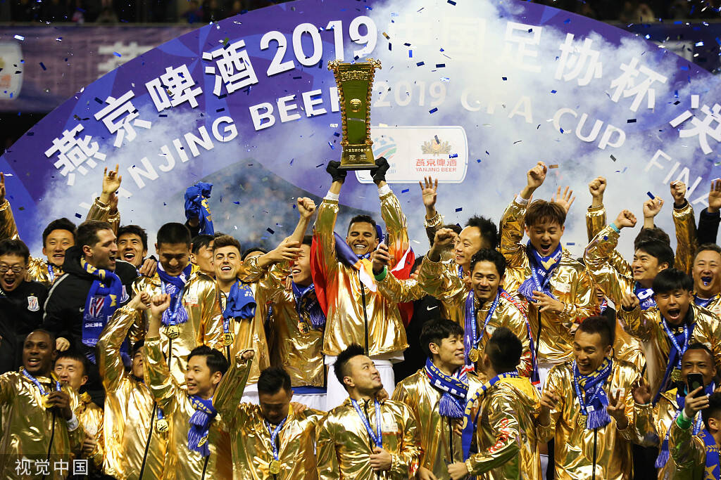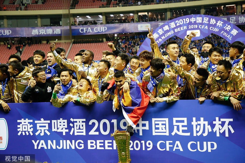 2019年12月6日,上海市,2019足协杯决赛,颁奖仪式,申花球员夺冠捧杯。