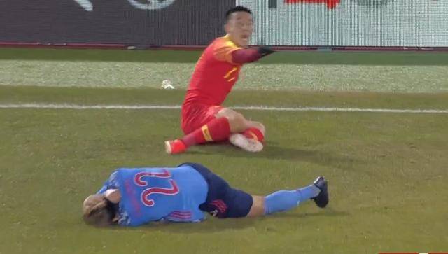 本场第31分钟,姜至鹏在和桥冈大树争抢时,直接一脚飞踹了对手头部,桥冈大树被姜至鹏直接踹倒在地。