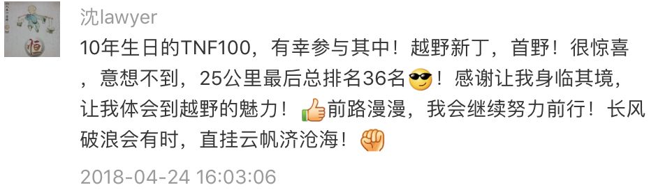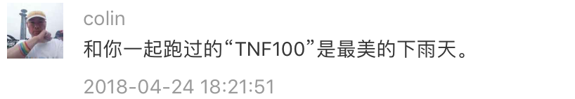 2018TNF100拾周年的开启不能说顺利,在风雨中怒放的十周年不仅是对参赛选手的考验,更是对赛事组织者的历练和考验,一系列快速反应的应急方案、一条条及时贴心的短信通知,得到了广大参赛选手理解。